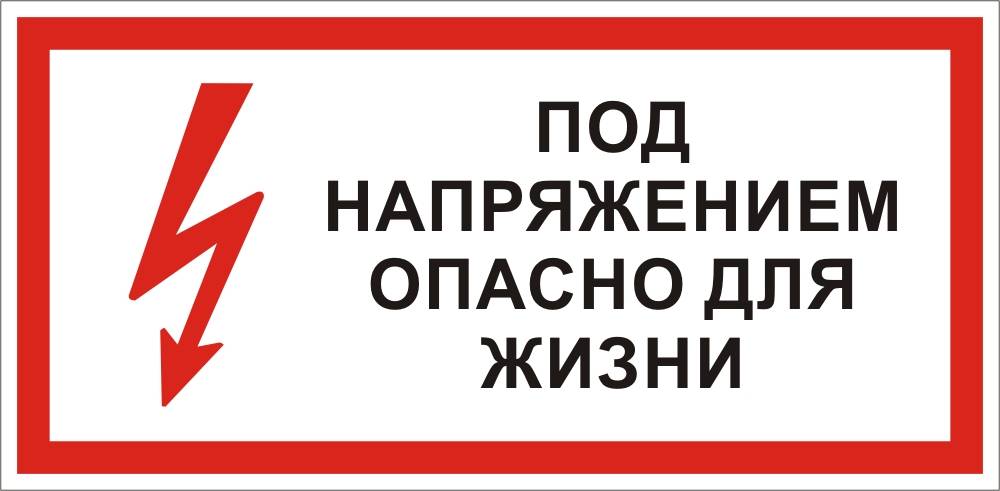 “СТОЙ. НАПРЯЖЕНИЕ”: предупреждение о возможном поражении током. Используется в мощных электроустановках как электростанций, так и подстанций.