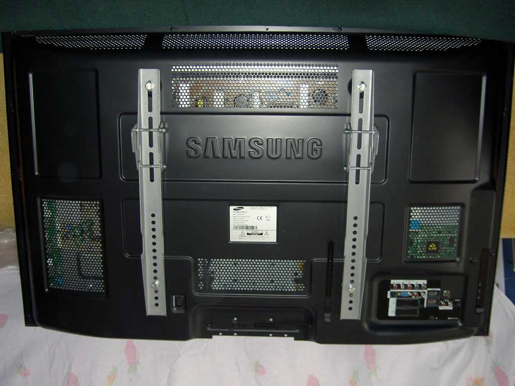 Для некоторых плоских телевизоров с небольшой диагональю экрана предусмотрена возможность подвешивания без дополнительных приспособлений. Для этого на тыльной стороне панели есть пазы, специально предназначенные для крепления плазмы путем подвешивания на закрученные в стену болты.