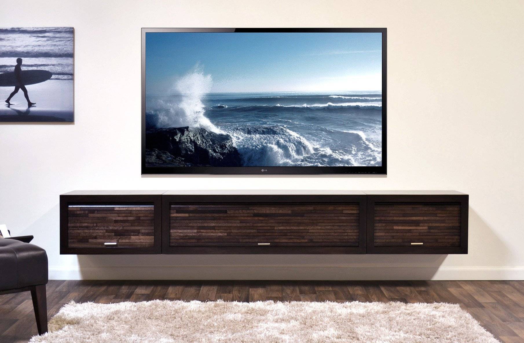 У настенного способа установки есть и минусы. В первую очередь это отсутствие возможности переноса техники в другое место без необходимости маскировать дырки в стене, оставленные крепежом. Второй недостаток – отсутствие горизонтальной плоскости для установки игровой приставки, Wi-Fi приёмника и других подключаемых к ТВ гаджетов. Для них придется продумать возможность крепления полки рядом с телевизором.
