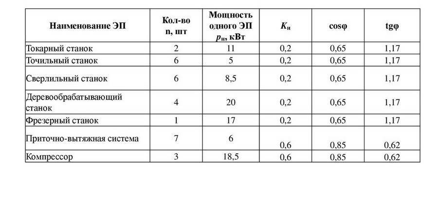 Таблица 2.1 Расчет активной нагрузки потребителей