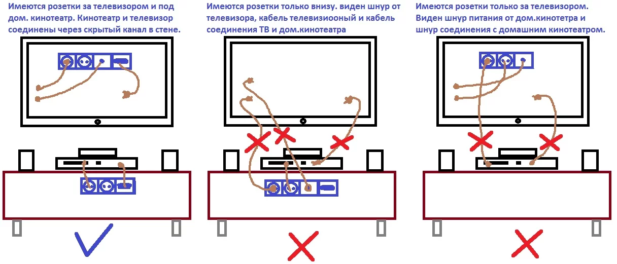 Тем, кто использует домашний кинотеатр, потребуется еще больше гнезд электросети. При этом, чтобы избежать путаницы проводов, лучше размещать группы отдельно.