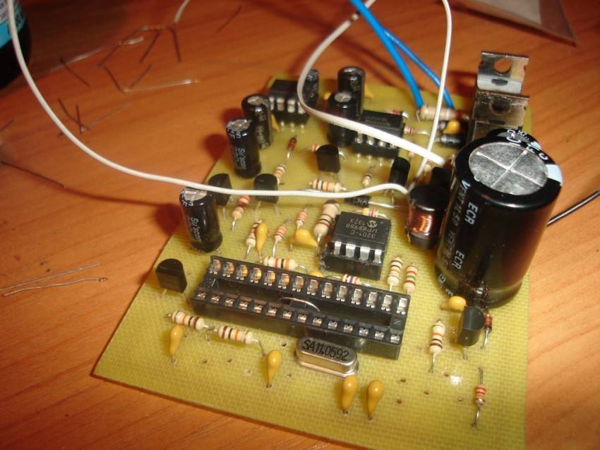 Размещаем радиодетали в соответствии со схемой и проводим распайку. |