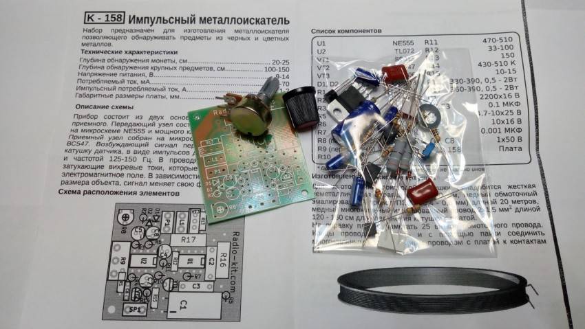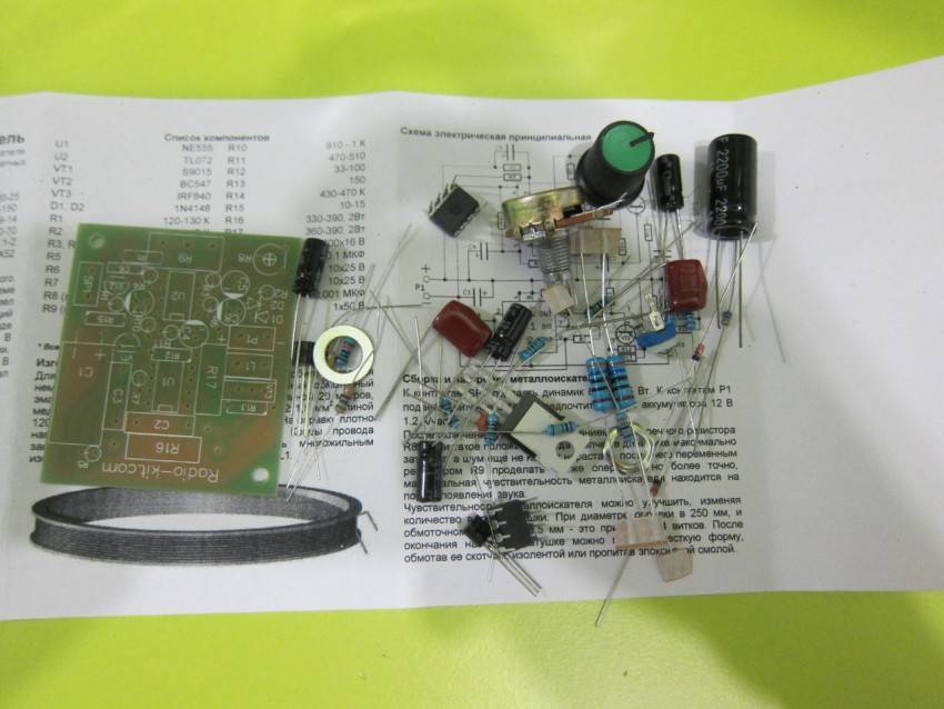 Для того чтобы собрать из этих деталей работающий металлоискатель, необходимо: