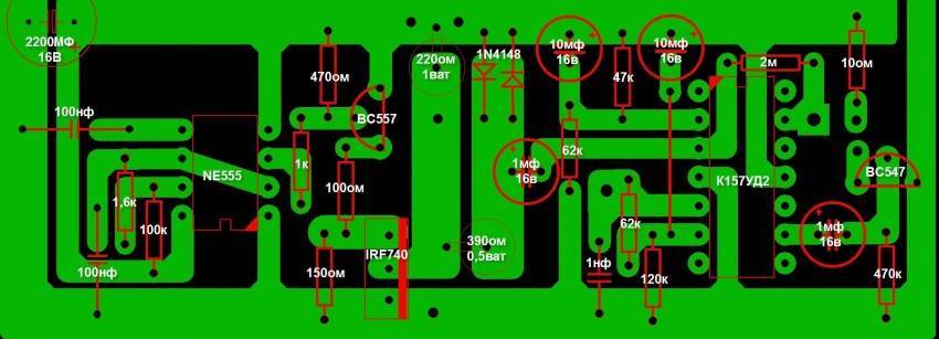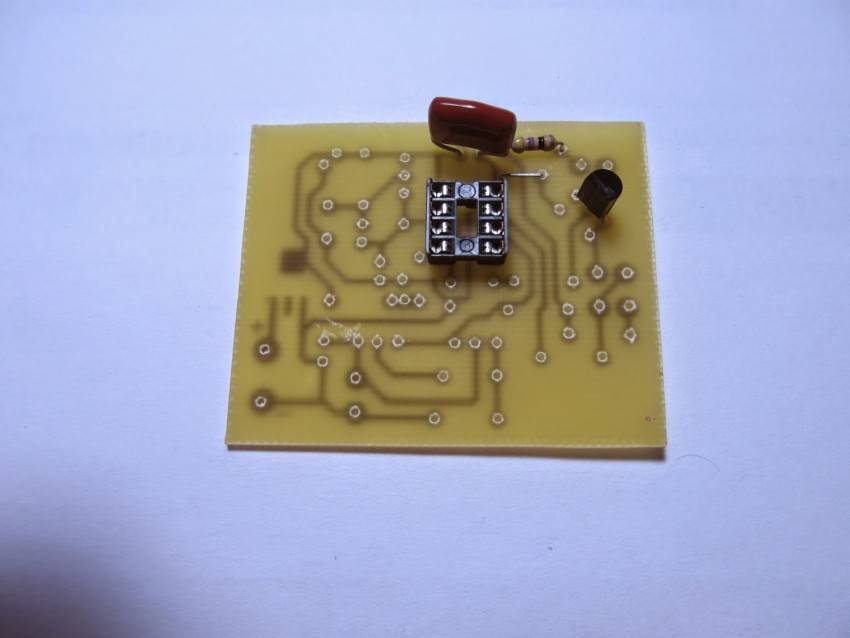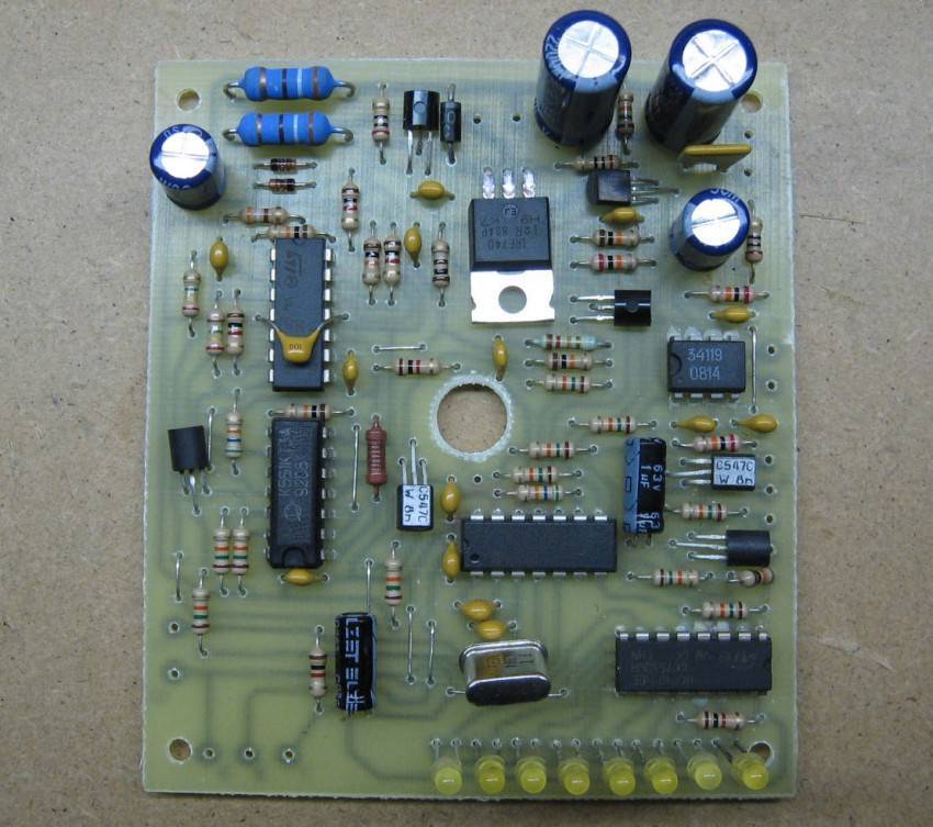 После того, как выполнено травление платы, в ней необходимо выполнить отверстия для установки компонентов схемы. После того, как выполнено лужение платы. Наступает самый важный этап. Установка и пайка своими руками деталей на подготовленную плату.