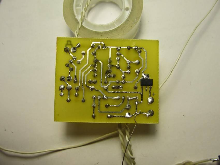 Процесс сборки глубинного металлодетектора выглядит примерно следующим образом. Сначала собирают блок управления, основу которого составляет печатная плата. Ее изготавливают из текстолита. Затем схему сборки переносят непосредственно на поверхность готовой платы. После того, как рисунок перенесен, плату необходимо протравить. Для этого применяют раствор, в который входят перекись водорода, соль, электролит.