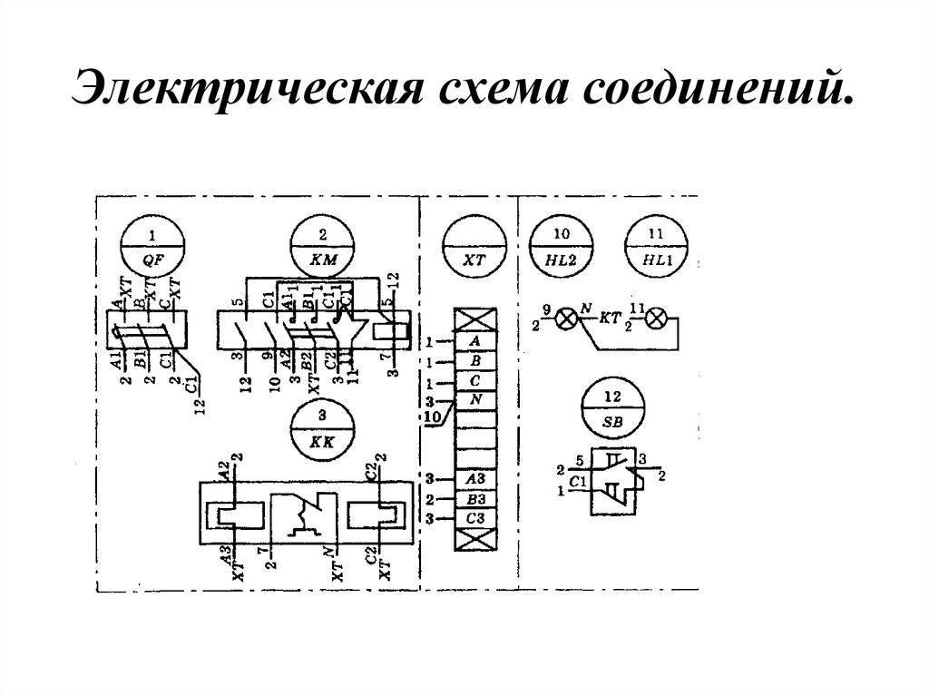 Линии взаимосвязи следует выполнять толщиной от 0,2 до 1,0 мм. Требования к схемам соединений монтажным На схемах соединений изображают все устройства и элементы изделия, их входные и выходные элементы и соединения между ними. Принципиальная схема Такой тип используется в распределительных сетях. Релейная часть выглядит несколько сложнее, но если рассматривать её по частям и так же, двигаясь последовательно, шаг за шагом, то нетрудно понять логику её работы.