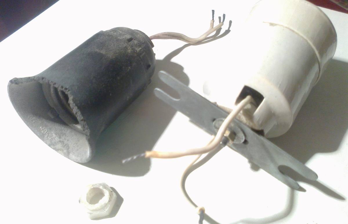 Если новый патрон оснащен в комплекте отводными проводами, необходимо обратить внимание на материал их изготовления. Вероятно, что устройство имеет алюминиевый проводник, а осветительный прибор подключен при помощи медного (либо наоборот)